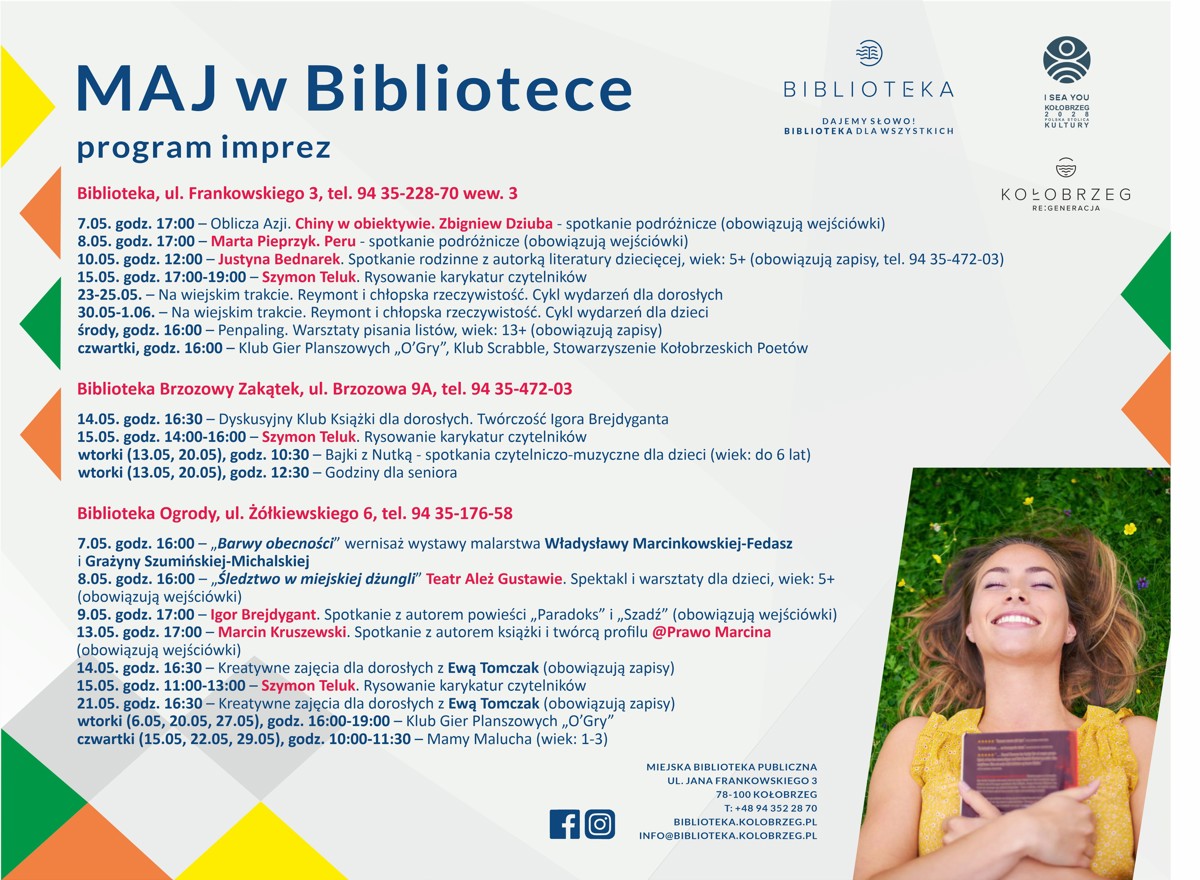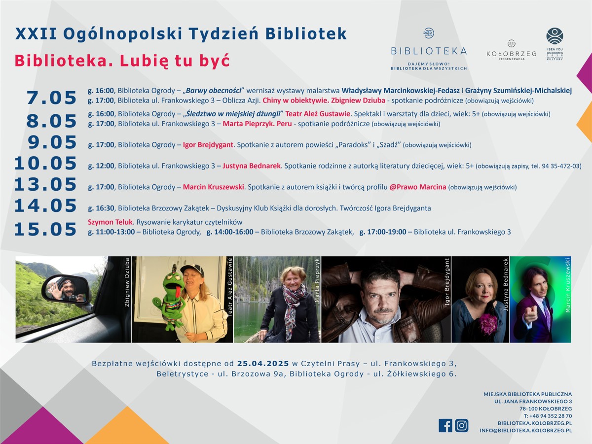 Od 1.09.2025 bezpłatne wejściówki będą dostępne w Czytelni Prasy - ul. Frankowskiego 3, Beletrystyce - ul. Brzozowa 9a, Biblioteka Ogrody - ul. Żółkiewskiego 6.