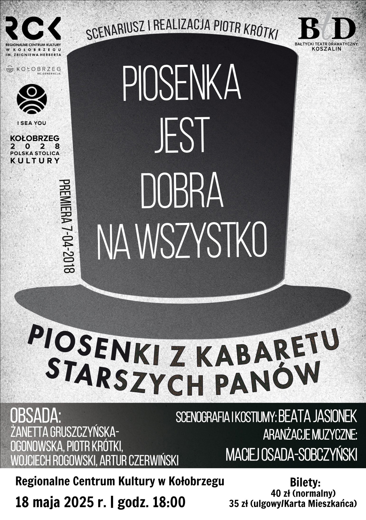 * bilety do nabycia w kasie w Regionalnym Centrum Kultury w Kołobrzegu im. Z. Herberta