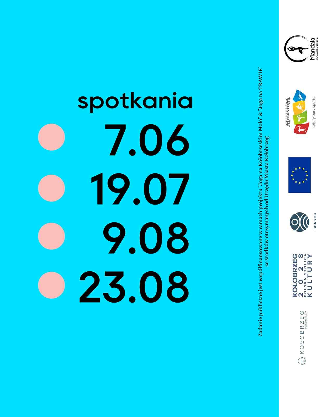 Jogę będziemy praktykować na molo i na trawie w różnych zielonych przestrzeniach Kołobrzegu.